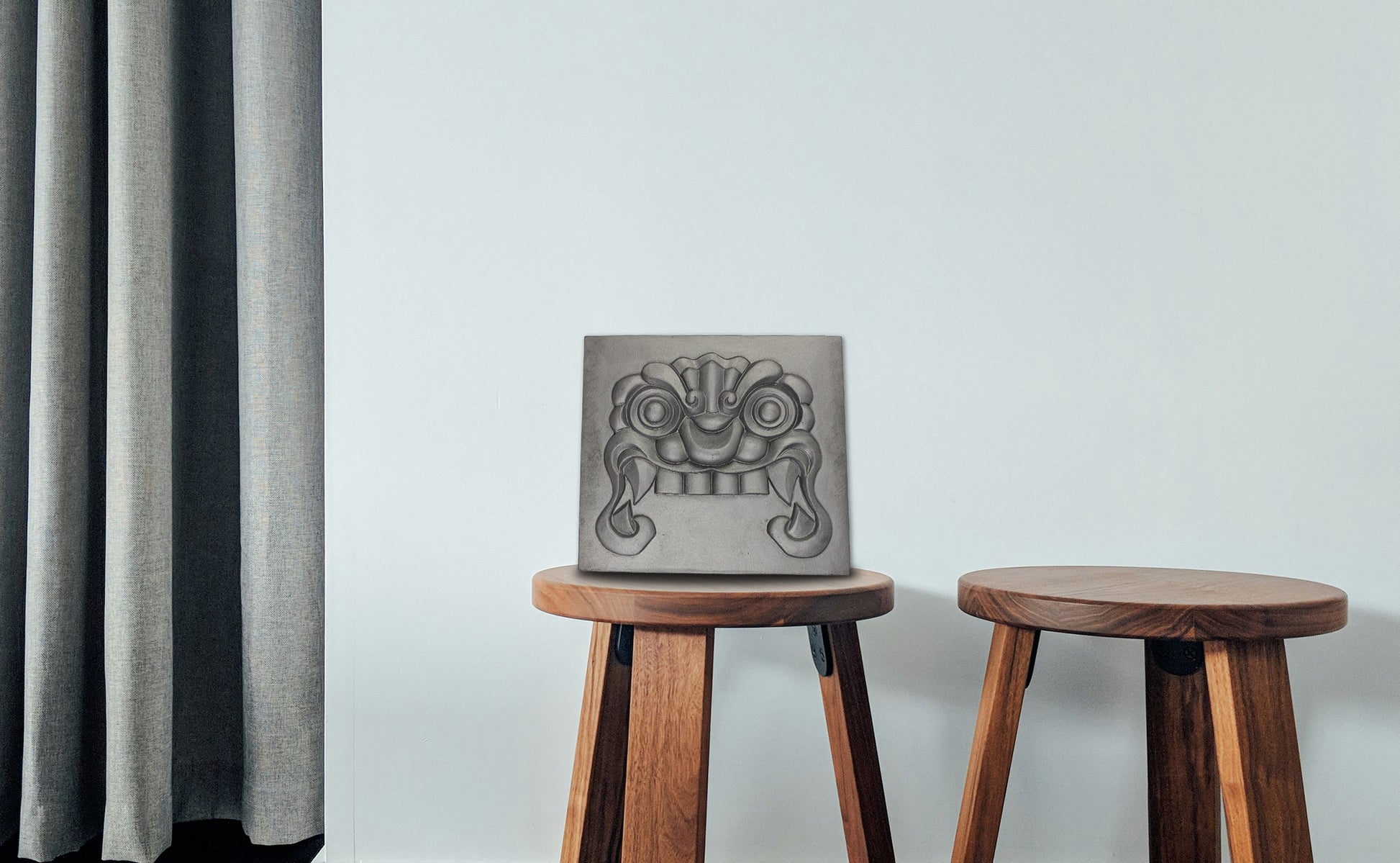 This 22 x 20 cm tile, made from traditional Ibushi-Gawara ceramic, features an intricately crafted dragon relief—a symbol of strength, wisdom, and protection in Japanese culture. Entirely handmade, it embodies the centuries-old craftsmanship of Awaji’s ceramic artisans. The special Ibushi firing technique gives the unglazed clay its distinctive silvery-metallic sheen.