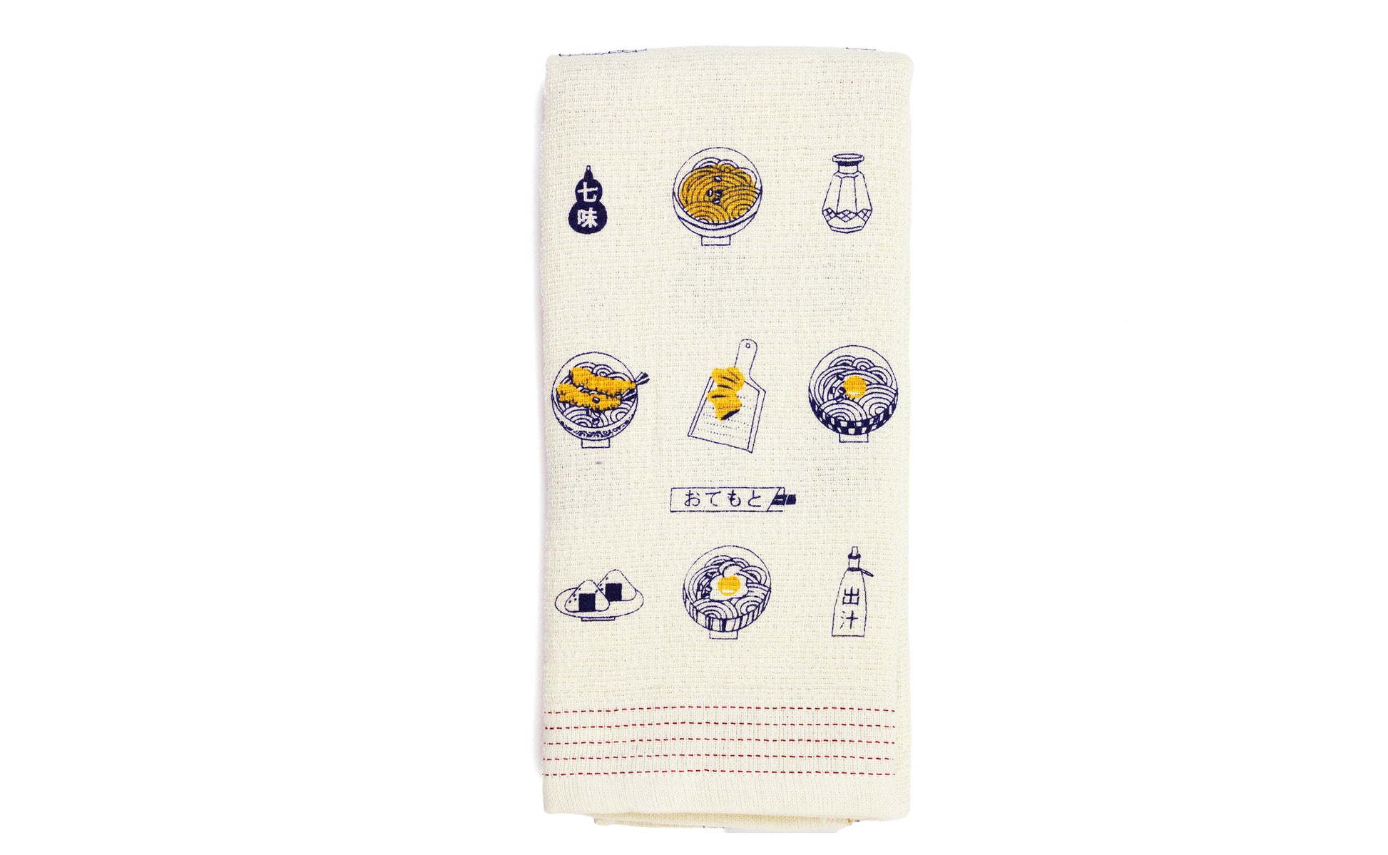 Crafted from 100% lightweight and fast drying cotton, it measures 33x100 cm and features delicious Udon soup in different combinations. Pre-washed in Japanese spring water, it makes the perfect gift for all Foodies out there!