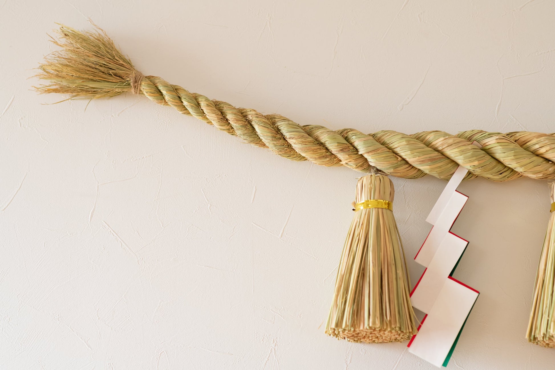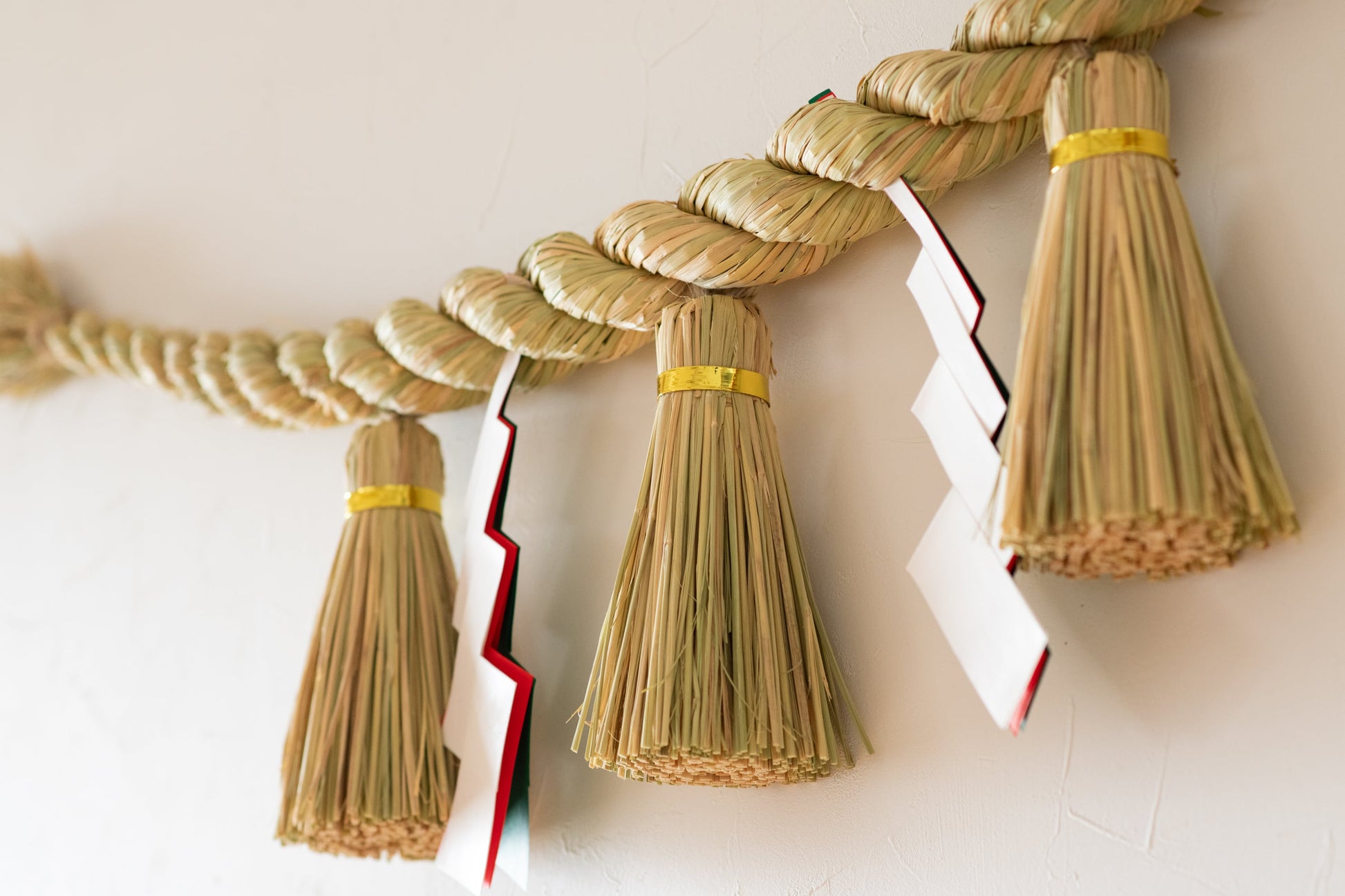In Shinto belief, shimenawa ropes are used to ward off negative energy and to invite the presence of the divine. The three tassels are often interpreted as a symbol of harmony between heaven, earth, and humanity, or as an embodiment of protective forces guarding the threshold.